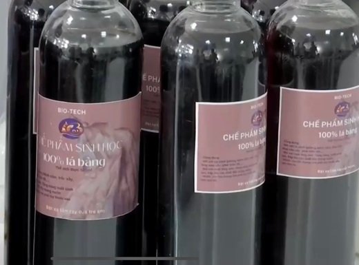 Hình 2. Chế phẩm sinh học từ lá bàng do nhóm nghiên cứu sản xuất.