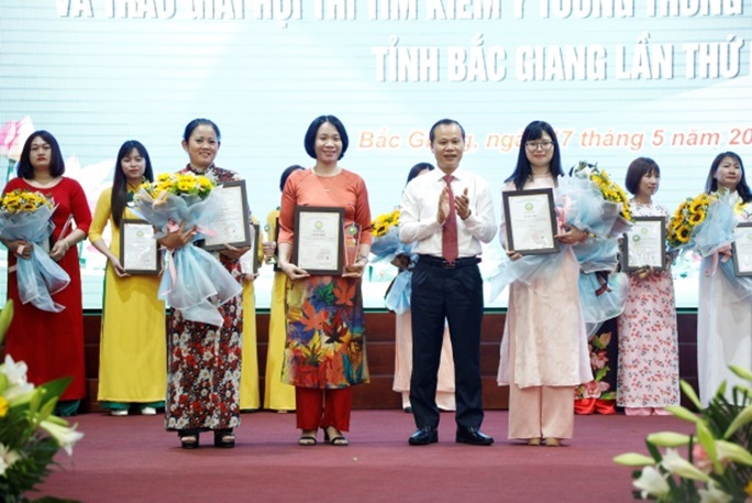 Phó Chủ tịch thường trực UBND tỉnh Bắc Giang Mai Sơn trao giải cho các tác giả, nhóm tác giả có ý tưởng đoạt giải Nhì.
