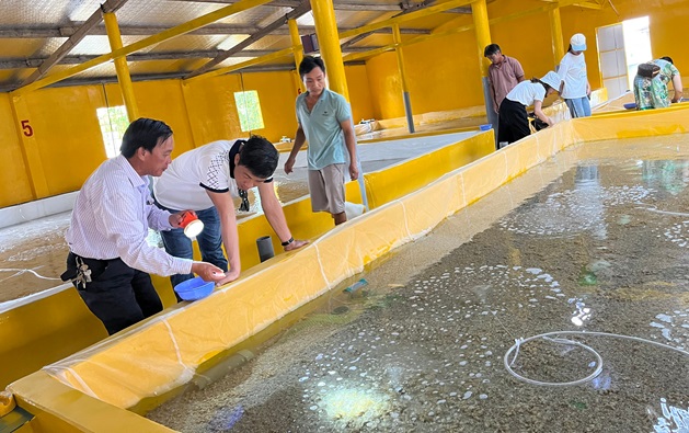 Hình 1. Mô hình nuôi ốc hương trong hệ thống tuần hoàn của dự án.