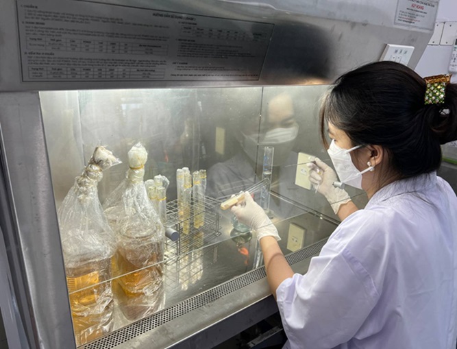 Thực hiện dự án nêu trên, Trung tâm Kỹ thuật Tiêu chuẩn Đo lượng Chất lượng đã ký kết hợp đồng chuyển giao công nghệ với Hợp tác xã Nông nghiệp và Ứng dụng Công nghệ cao Giọt Phù Sa để tiếp nhận quy trình kỹ thuật nuôi trồng nấm Đông trùng hạ thảo bằng phương pháp cấy trong phòng thí nghiệm và nuôi trong môi trường lạnh. Hợp tác xã Nông nghiệp ứng dụng công nghệ cao Giọt Phù Sa đã cử các chuyên gia, cán bộ kỹ thuật có nhiều kinh nghiệm trực tiếp tổ chức tập huấn, hướng dẫn các quy trình kỹ thuật chuyển giao. Để đảm bảo các điều kiện về nhân lực triển khai dự án, 2 cán bộ của Trung tâm Kỹ thuật Tiêu chuẩn Đo lường Chất lượng (trong đó có chủ nhiệm dự án cùng 1 kỹ sư công nghệ sinh học) đã trực tiếp tham dự khóa đào tạo, tập huấn về quy trình quản lý, quy trình kỹ thuật nuôi trồng nấm Đông trùng hạ thảo bằng phương pháp cấy trong phòng thí nghiệm và nuôi trong môi trường lạnh. Việc đào tạo, tập huấn được hướng dẫn thực hiện từ lý thuyết, kết hợp với nghiên cứu tài liệu kỹ thuật, đến thực hành thực tế từ khâu chọn giống và các công đoạn trong phòng thí nghiệm đến các khâu nuôi trong môi trường lạnh. Sau khi kết thúc khóa đào tạo, các cán bộ đã nắm vững và làm chủ được quy trình kỹ thuật nuôi trồng nấm Đông trùng hạ thảo phù hợp với điều kiện thực tế của địa phương. Bên cạnh đó, 2 cán bộ đã đủ khả năng tập huấn chuyển giao, nhân giống cho các đơn vị, doanh nghiệp và người dân trong tỉnh.