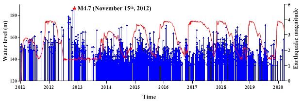 Mối liên hệ giữa quá trình hoạt động động đất và sự thay đổi mực nước hồ chứa giai đoạn từ tháng 10/2011 đến tháng 03/2020.
