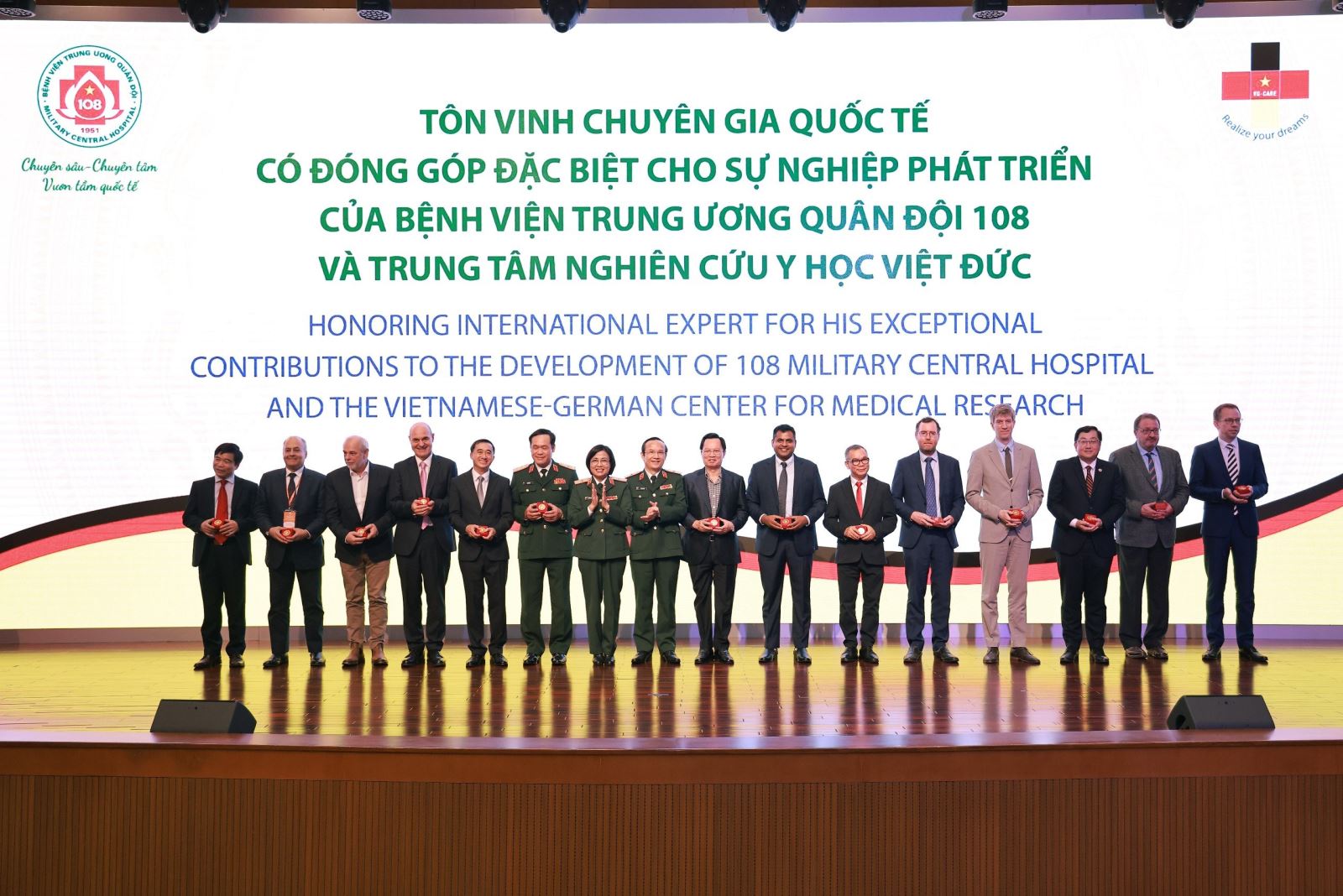 Tôn vinh các chuyên gia quốc tế có đóng góp đặc biệt cho sự phát triển của Bệnh viện Trung ương Quân đội 108 và Trung tâm Nghiên cứu Y học Việt Đức.