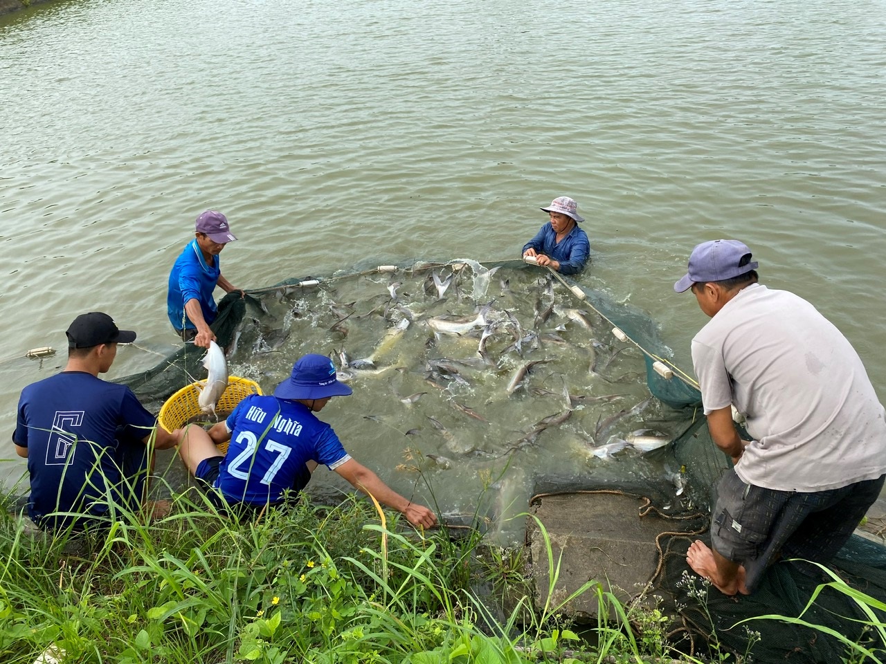 Thu hoạch cá vồ cờ.