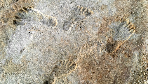Dấu chân dọc theo một hồ nước cổ ở New Mexico có thể đã ở đó 5000 năm trước khi các nhà khảo cổ cho rằng con người đã đến châu Mỹ. Nguồn: Công viên Quốc gia White Sands, Mỹ.