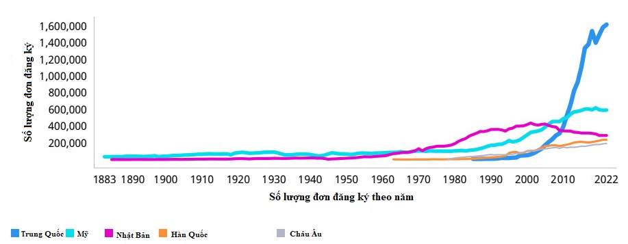 Theo báo cáo nêu trên của WIPO, trong bối cảnh sau đại dịch và suy thoái kinh tế, số đơn đăng ký cấp bằng sáng chế toàn cầu có chiều hướng giảm song vẫn đạt con số 3,46 triệu đơn vào năm 2022, đánh dấu năm tăng trưởng thứ ba liên tiếp. Trong đó, Trung Quốc, Mỹ, Nhật Bản, Hàn Quốc và CHLB Đức là những quốc gia có số lượng đơn xin cấp bằng sáng chế cao nhất. Đây là động lực chính của sự tăng trưởng toàn cầu trong lĩnh vực này.