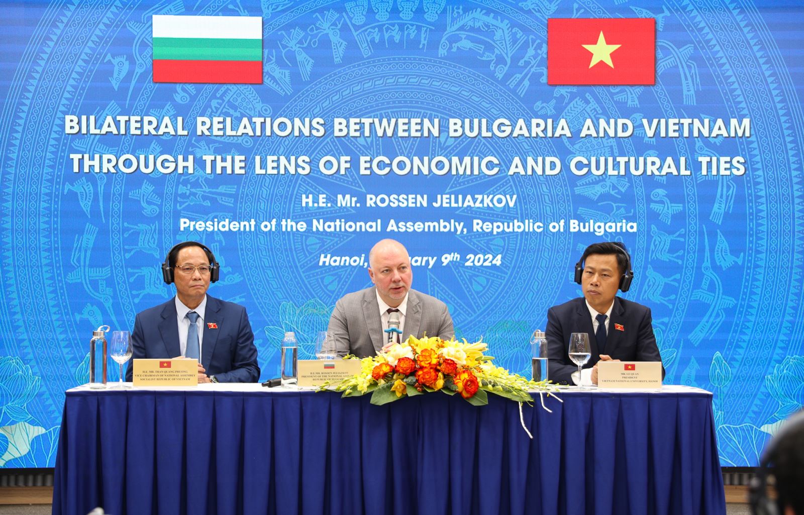 Trong khuôn khổ chuyến thăm chính thức Việt Nam theo lời mời của Chủ tịch Quốc hội Nước CHXHCN Việt Nam Vương Đình Huệ từ ngày 05-09/01/2024, ngày 09/01/2024, Chủ tịch Quốc hội Bulgaria, ngài Rossen Dimitrov Jeliazkov đã đến thăm Đại học Quốc gia Hà Nội (ĐHQGHN) và thuyết trình về chủ đề “Quan hệ song phương Bulgaria và Việt Nam thông qua lăng kính của các liên hệ kinh tế và văn hoá”.