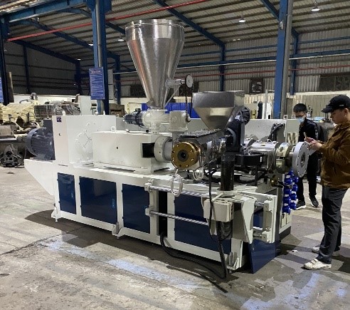 Máy ép đùn hai trục vít với bộ phận cải tiến phủ trực tiếp lớp bề mặt lên sản phẩm trong quá trình ép đùn - sản phẩm do Công ty TNHH Công nghiệp Quang Nam nghiên cứu chế tạo.