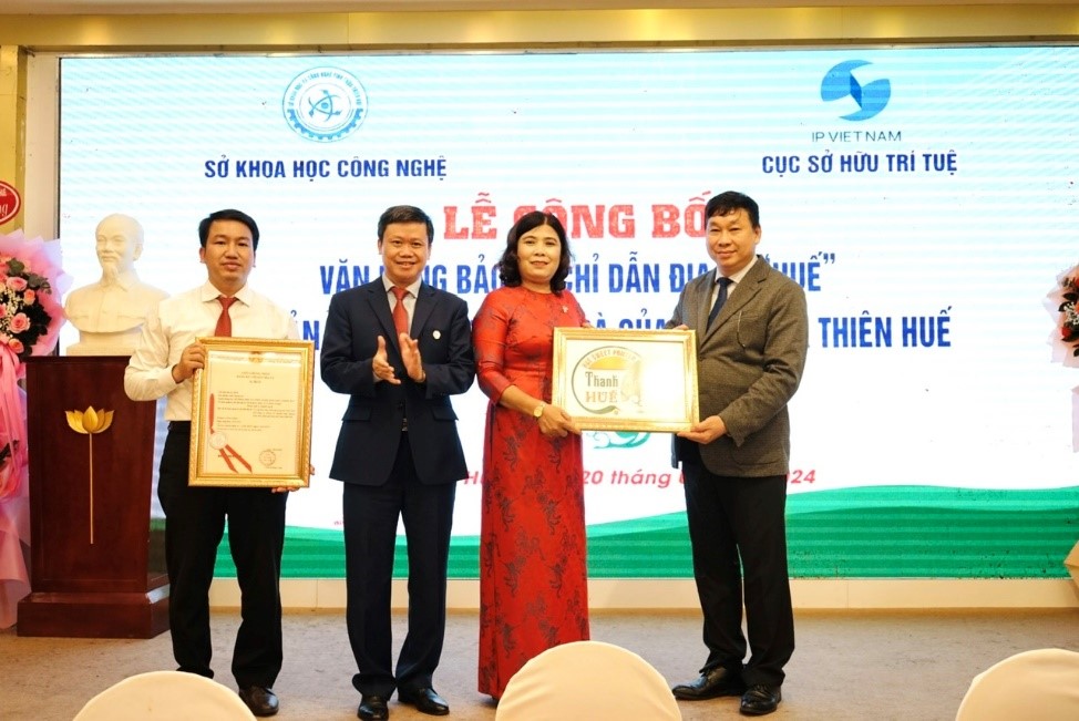 Đại diện Cục Sở hữu trí tuệ trao Giấy chứng nhận Chỉ dẫn địa lý “Huế” cho sản phẩm quả Thanh trà.