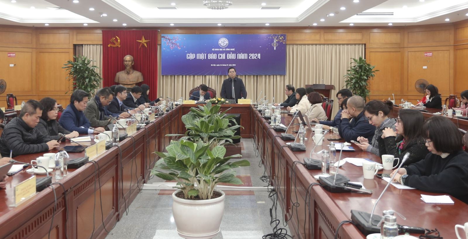 Tại buổi gặp mặt với báo chí đầu năm 2024, đại diện lãnh đạo các đơn vị chức năng đã giải đáp một số vấn đề liên quan đến công tác quản lý nhà nước của Bộ KH&CN như: những nhóm vấn đề sửa đổi Luật KH&CN; vấn đề phát triển hệ sinh thái khởi nghiệp đổi mới sáng tạo; vấn đề đào tạo và phát triển nguồn nhân lực chip bán dẫn; vấn đề thực hiện các chương trình KH&CN cấp quốc gia; công bố chỉ số đổi mới sáng tạo địa phương…