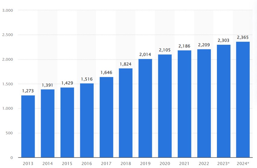 Tổng kinh phí nghiên cứu tế bào gốc của NIH giai đoạn 2013-2024 (Nguồn: Statista).