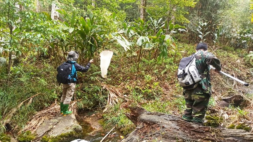 Thu bắt mẫu ong mật bằng vợt côn trùng.