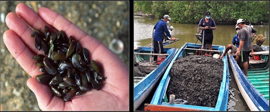 Vẹm đất dùng làm thức ăn nuôi cua.