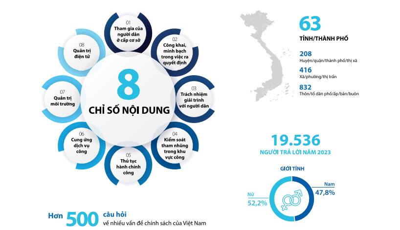 Báo cáo PAPI 2023 cho thấy, người dân đánh giá cao hơn hiệu quả phòng, chống tham nhũng và quản trị điện tử, nhưng lại đánh giá thấp hơn hiệu quả thực hiện công khai, minh bạch trong việc ra quyết định tại địa phương. Tình hình kinh tế của Việt Nam và điều kiện kinh tế hộ gia đình là mối quan ngại hàng đầu của người dân trong năm qua.