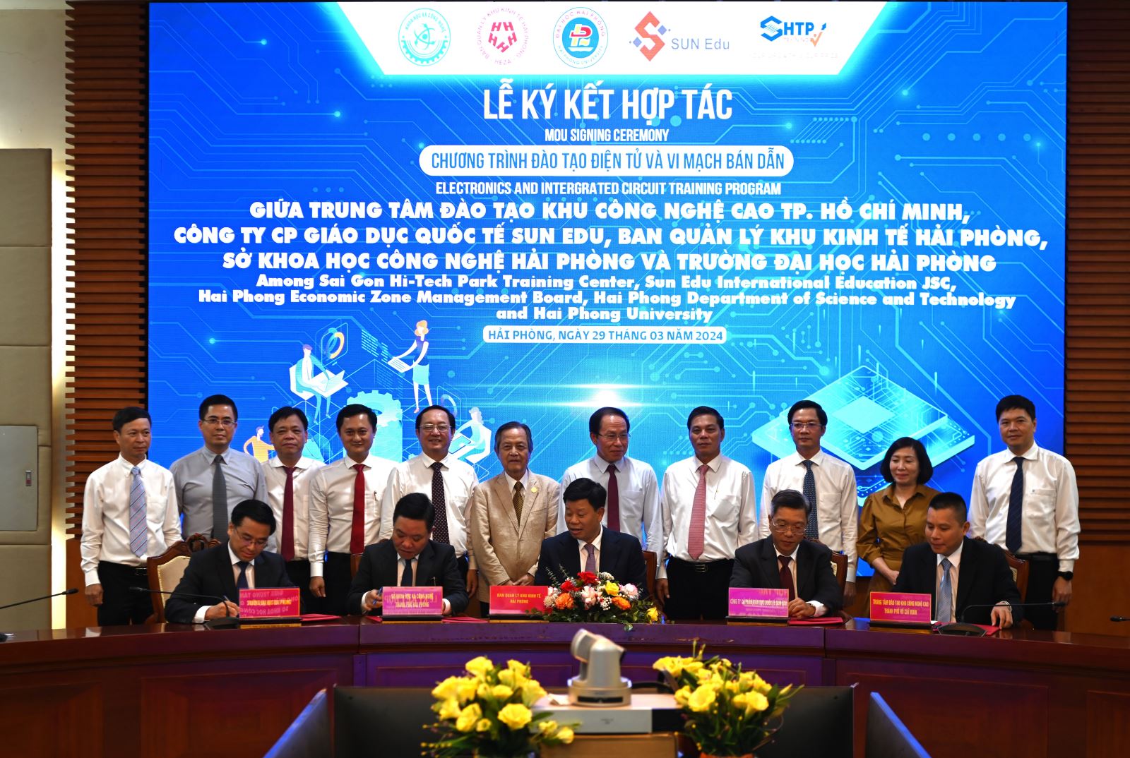 Sự kiện Lễ ký kết hợp tác ngày 29/3/2024 tại TP Hải Phòng giữa Khu công nghệ cao TP Hồ Chí Minh, Công ty cổ giáo dục quốc tế SunEdu và Ban quản lý các khu kinh tế Hải Phòng về đào tạo nhân lực dưới sự chứng kiến của lãnh đạo Bộ KH&CN, lãnh đạo TP Hải Phòng cho thấy các nỗ lực nhằm hiện thực hóa mục tiêu đưa xây dựng Hải Phòng thành trung tâm nhân lực chất lượng cao ngành điện tử, bán dẫn.