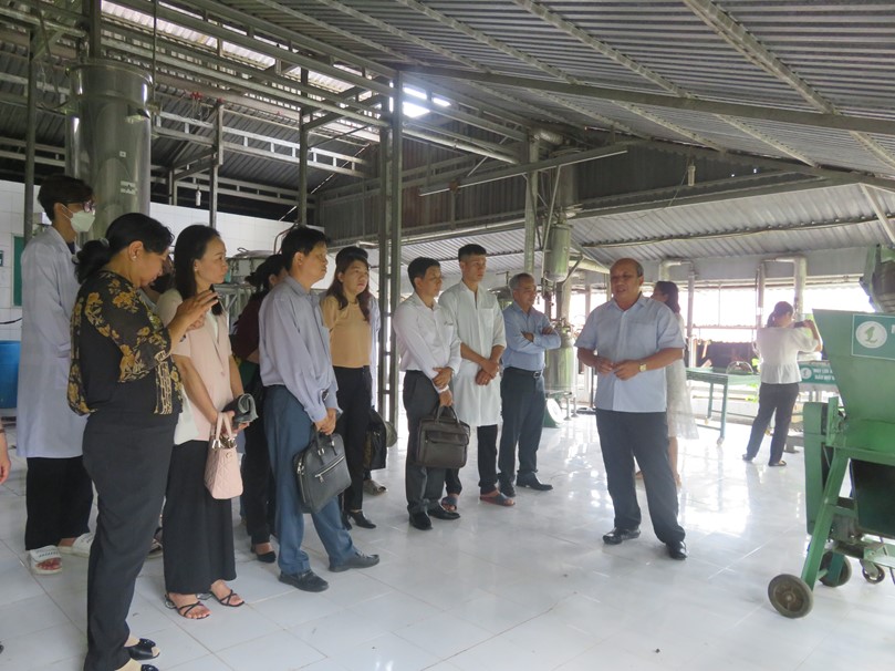 Các thành viên Hội đồng nghiệm thu nhiệm vụ kiểm tra thực tế tại Công ty Cổ phần Nghiên cứu Bảo tồn và Phát triển Dược liệu Đồng Tháp Mười.