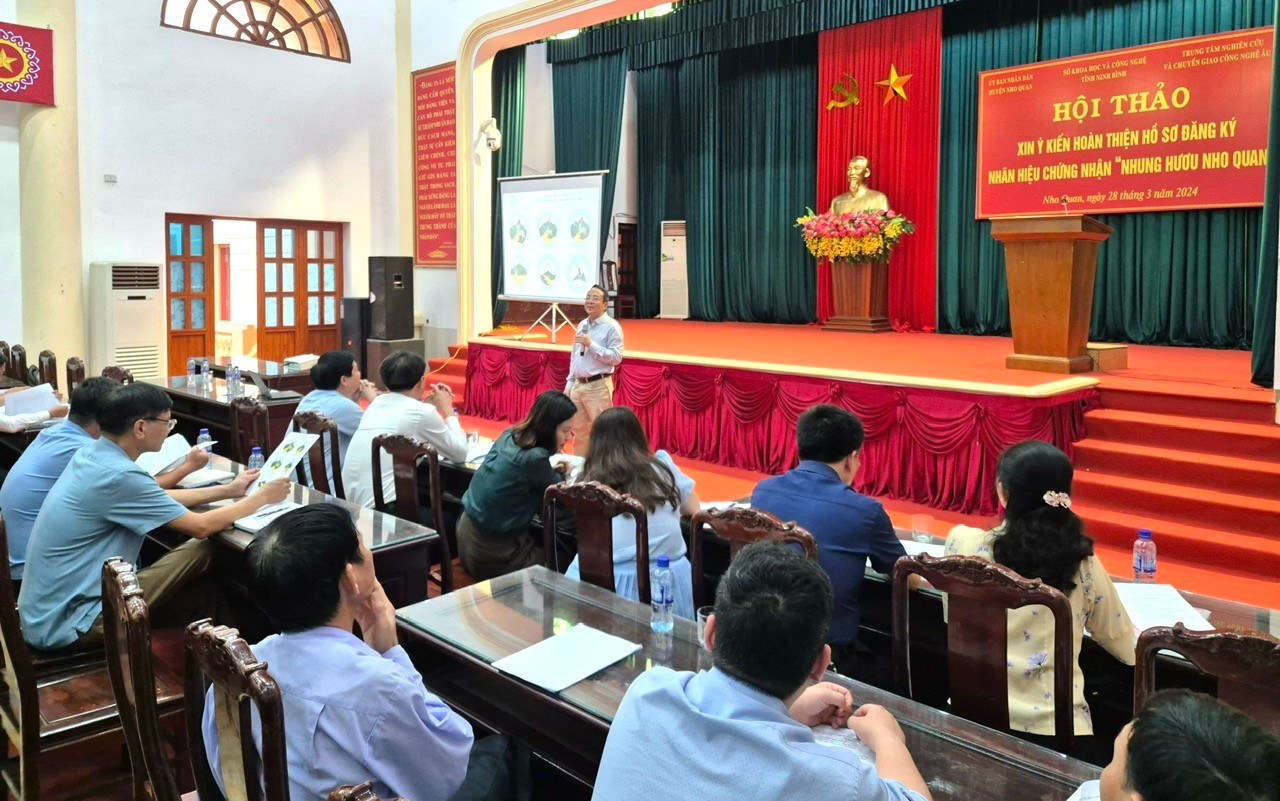 Quang cảnh Hội thảo xin ý kiến hoàn thiện hồ sơ đăng ký NHCN “Nhung hươu Nho Quan” tại UBND huyện Nho Quan, tỉnh Ninh Bình.