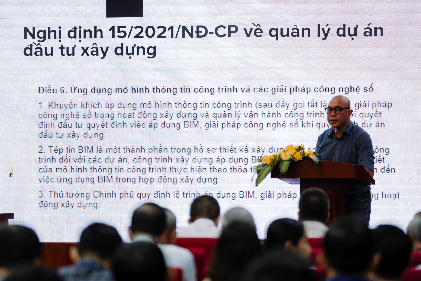 TS Tạ Ngọc Bình - Viện Kinh tế xây dựng chia sẻ tham luận cơ chế chính sách và chi phí áp dụng BIM tại Tọa đàm.
