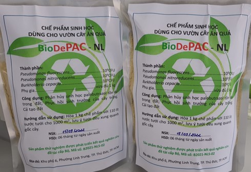 Chế phẩm sinh học có khả năng phân giải PBZ dùng cho vườn cây ăn quả do Trường Đại học Nông Lâm TP Hồ Chí Minh nghiên cứu, sản xuất.