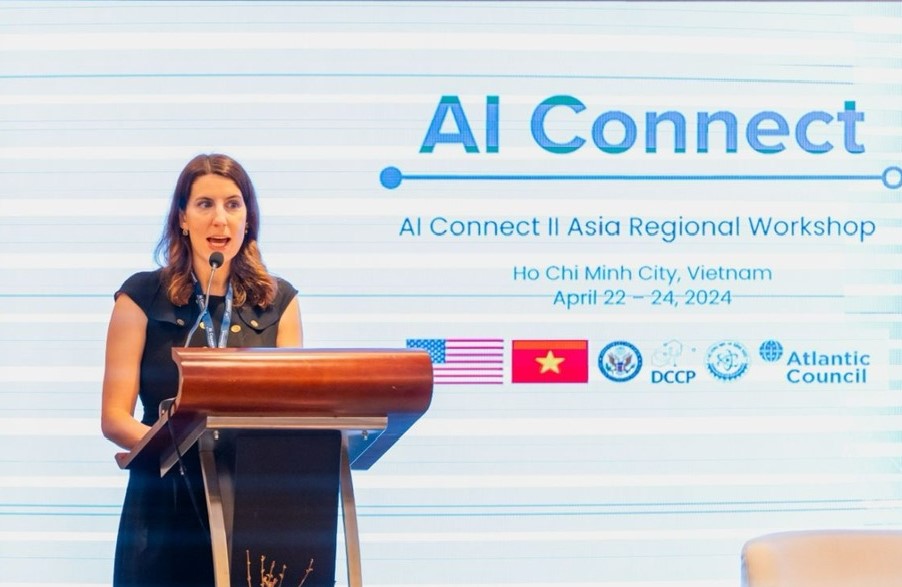 Bà Anne Benjaminson - Phó Tổng Lãnh sự (Tổng Lãnh sự quán Hoa Kỳ tại TP Hồ Chí Minh) cho biết, Hội thảo AI Connect là chuỗi sự kiện khẳng định trách nhiệm và đóng góp của Hoa Kỳ cho quá trình phát triển có trách nhiệm và toàn diện công nghệ AI, mang lại lợi ích cho con người ở khu vực châu Á - Thái Bình Dương theo đúng như quy định tại Nguyên tắc AI của Tổ chức Hợp tác và Phát triển kinh tế (OECD).