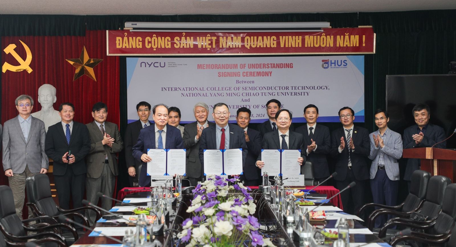 Ngày 08/07/2024, Trường Đại học Khoa học Tự nhiên (VNU-HUS), Đại học Quốc gia Hà Nội (ĐHQGHN) và Đại học Quốc lập Yang Ming Chiao Tung (NYCU), Đài Loan (Trung Quốc) đã ký kết văn bản thỏa thuận hợp tác đào tạo cử nhân ngành công nghệ bán dẫn.