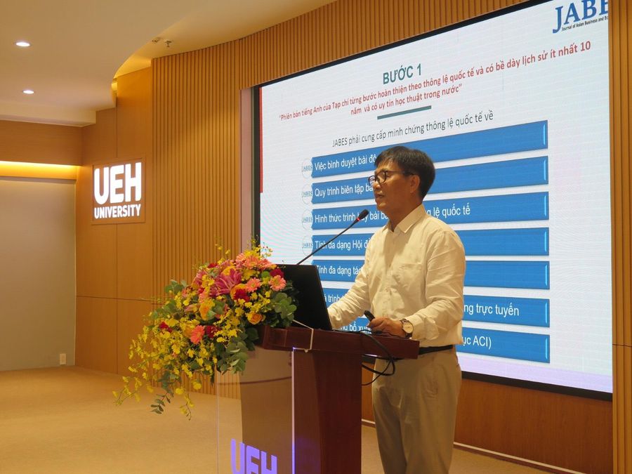 Tại Tọa đàm, GS.TS Nguyễn Trọng Hoài - Tổng biên tập Tạp chí Tạp chí Nghiên cứu Kinh tế và Kinh doanh châu Á (Journal of Asian Business and Economic Studies - JABES) của Đại học Kinh tế TP Hồ Chí Minh đã trình bày tham luận “Kinh nghiệm gia nhập WoS/Scopus: Tình huống Tạp chí Nghiên cứu Kinh tế và Kinh doanh châu Á”.