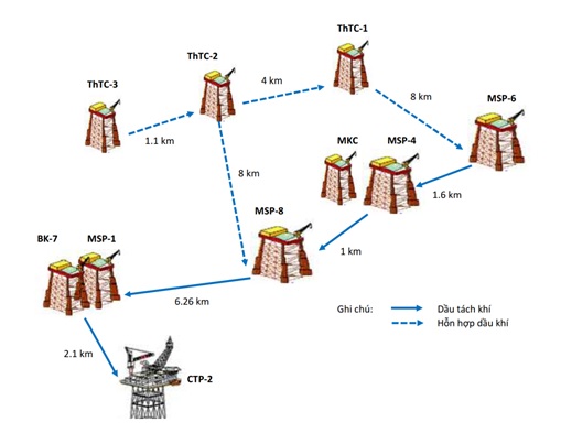 Sơ đồ kết nối mỏ Gấu Trắng với mỏ Bạch Hổ.