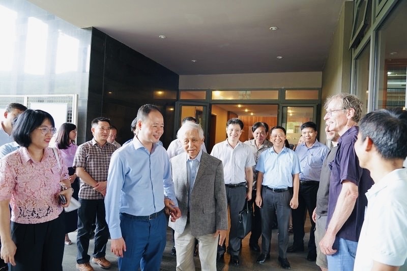 Thứ trưởng Trần Hồng Thái trao đổi với các nhà khoa học đang làm việc tại Trung tâm Quốc tế Khoa học và Giáo dục liên ngành.